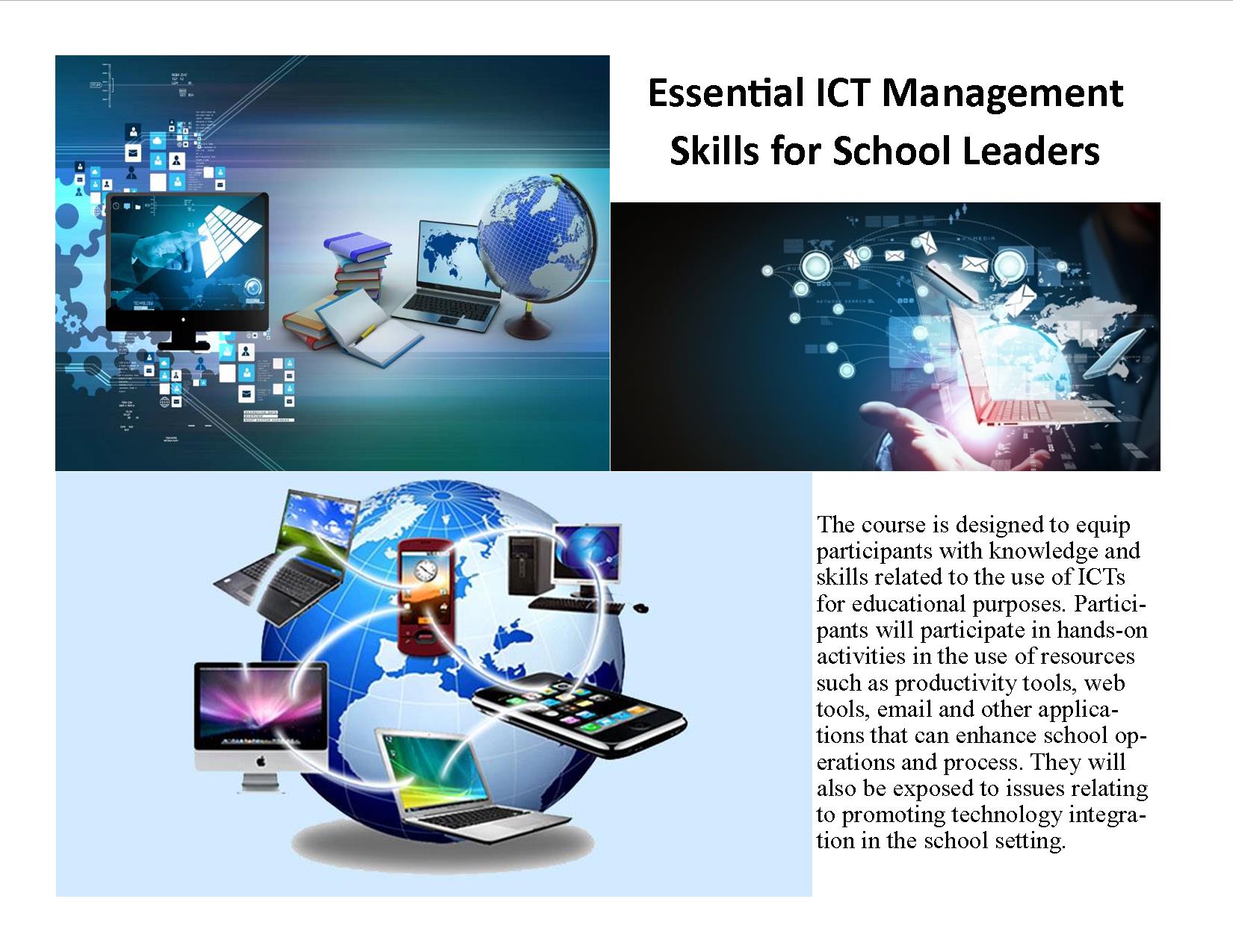 This course is ideal for principals, headteachers, teachers or ICT directors, managers, technicians and other staff who support ICT in educational establishments.
